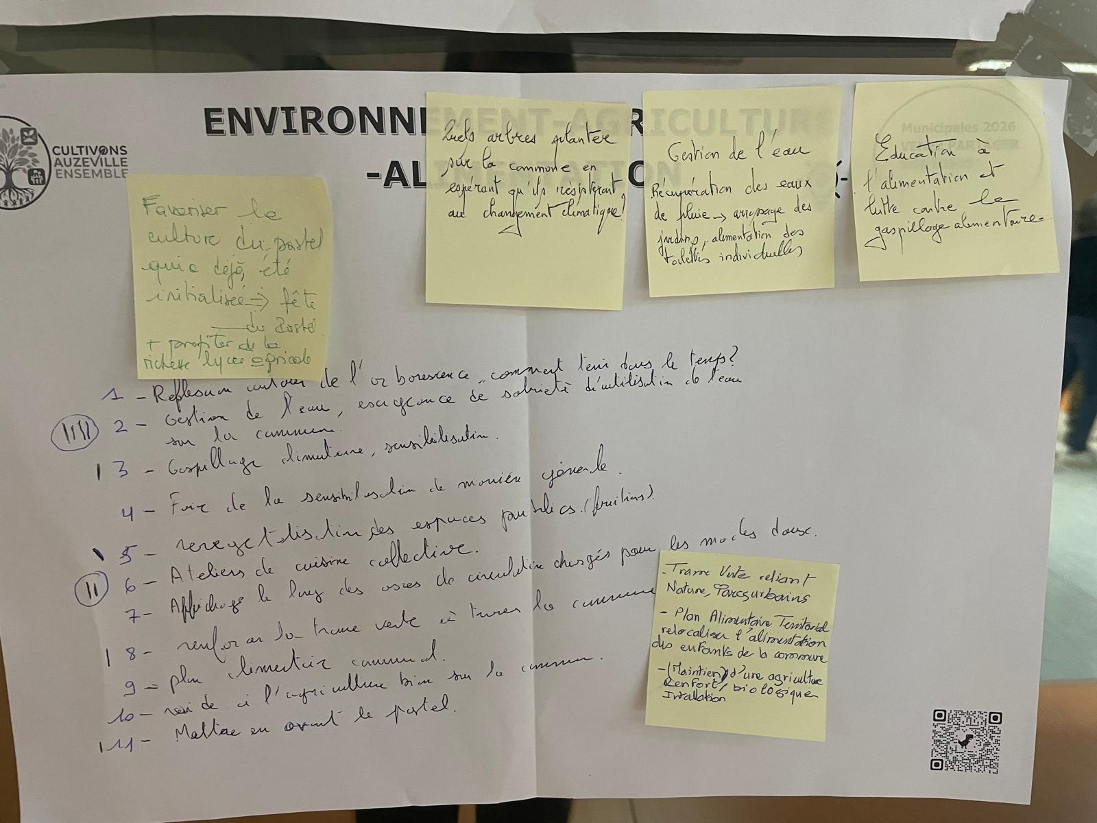 Aucune idée n’est perdue : autres idées proposées dans l’atelier (Post-it cf. photo ) :