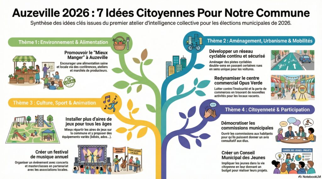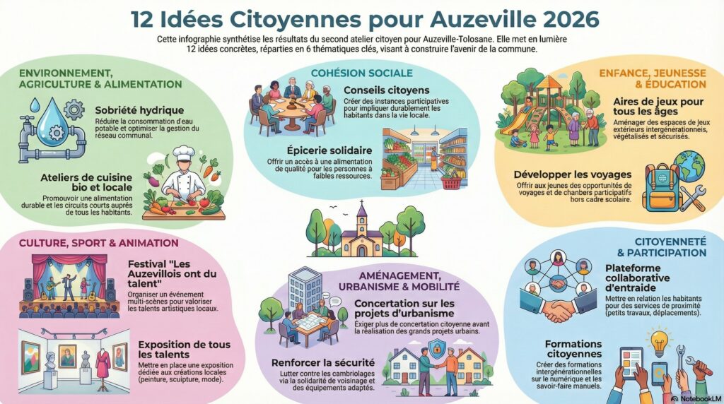 Un grand merci à vous, les Auzevillois, qui ont participé à nos deux rencontres citoyennes et aux ateliers thématiques ! Votre implication et votre énergie ont confirmé notre conviction : l’avenir de notre village se construit Ensemble.