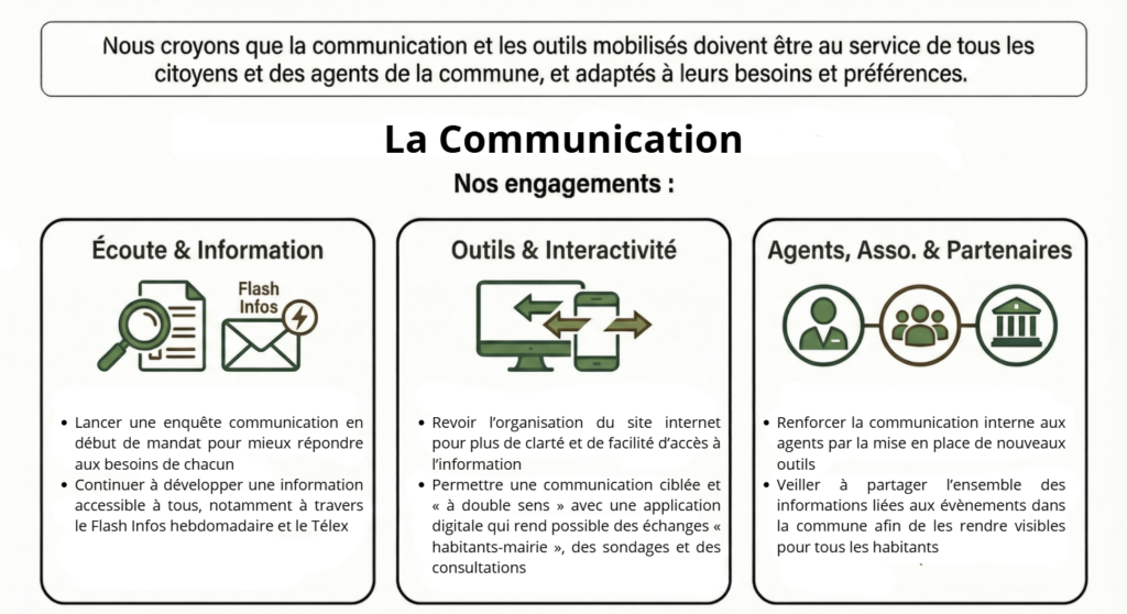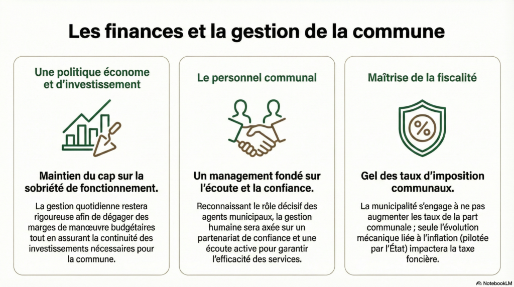 - La contribution du personnel communal étant décisive, nous poursuivrons un management fondé sur l’écoute et la confiance des agents.
