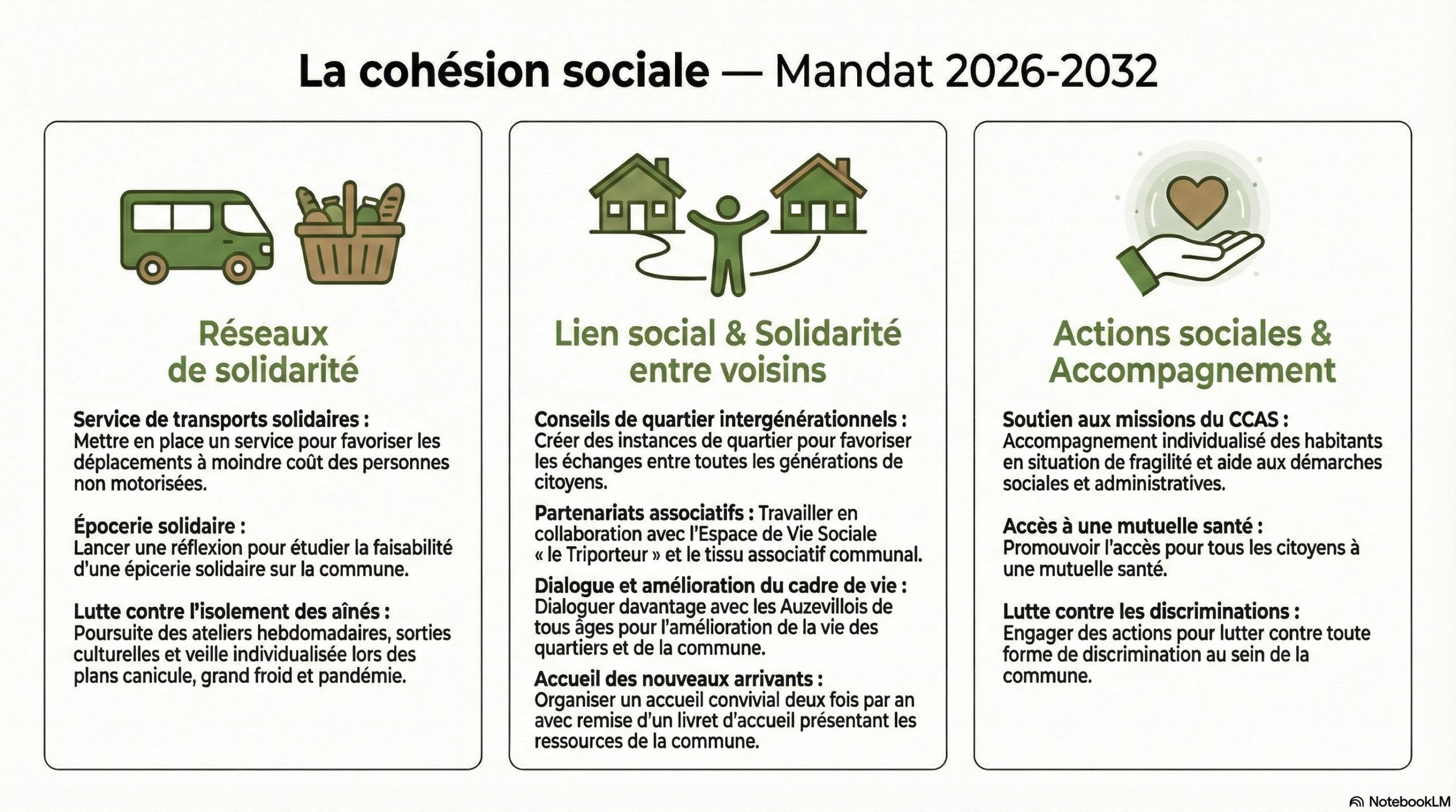 - Dialoguer davantage avec les Auzevillois de tous âges pour l’amélioration de la vie des quartiers et de la commune.